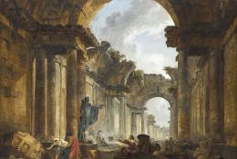 Hubert Robert montre son grand intérêt pour cette tendance antiquisante, novatrice, mais qui revendique aussi sa filiation avec l’art de Poussin, grand représentant du classicisme français. Hubert Robert peut être qualifié de peintre néoclassique et, par certains aspects de sa peinture, préromantique