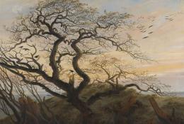 Ce peintre image 1 fait partie de la première génération du mouvement romantique allemand. Il choisit de traduire en peinture non pas ce qu’il voit, mais ce qu’il ressent face à la nature. Il charge ce motif central de ses tableaux d’un questionnement symbolique en rendant visibles le silence et le mystère de l’existence. Lors d’un voyage à Dresde en 1834, le sculpteur français David d’Angers rencontre Friedrich et note ensuite à son propos dans ses carnets : « Il sent admirablement bien la tragédie du paysage. » Ce caractère particulier correspond à la notion esthétique du sublime, qui voit dans le paysage l’écho de la finitude et de la fragilité humaines face à sa beauté idéale et inquiétante. L’homme peut se sentir en danger parmi des arbres déchiquetés sous la neige image 2, ou encore être fasciné par les éléments image 3. Le peintre offre la possibilité de contempler, mais aussi de réfléchir à notre destinée image 4.