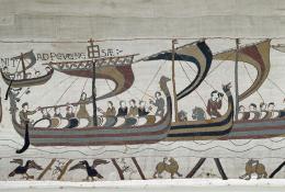 À droite, un groupe de chevaliers se rassemble ; des chevaux en raccourci détail b se présentent de dos. Le mouvement s’accentue à gauche avec la charge des cavaliers. Ils présentent un front uni et se dirigent vers l’ennemi, situé hors champ. La visière fermée de leurs casques donne à leur élan un effet de brutalité.
