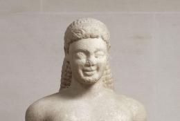 Période archaïque : Période qui s’étend de 620 à 480 av. J.-C. et qui connaît un grand développement artistique dans le monde grec, avec l’apparition de l’architecture de pierre et de son décor sculpté, l’essor de la grande statuaire de marbre et l’apogée de la céramique peinte, d’abord à figures noires, puis à figures rouges.