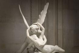 Si cette peinture a suscité maintes interprétations, un point n'est jamais contesté : Cythère, l'île de Vénus, déesse de l'amour, est au cœur de la scène. Mais plutôt que de représenter un épisode de la mythologie, Watteau a préféré suggérer le monde de l'amour. Dans un vaste paysage, des couples forment une guirlande entre la statue de Vénus image b, qui émerge des bosquets, et l'embarcation de la déesse image c. Les roses qui s'enroulent autour de la statue et les petits amours qui s'envolent dans le ciel bleuté sont traditionnellement associés à Vénus. Les attitudes expressives des couples de pèlerins image d évoquent les différentes étapes du sentiment amoureux.