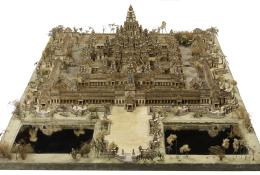 Angkor Vat : Temple d’État de Sûryavarman II, situé au sud d’Angkor Thom, il a été construit pendant la première moitié du XIIe siècle. Il était consacré au dieu Vishnou, ce qui explique peut-être qu’il soit ouvert à l’ouest et non à l’est comme les autres temples. Il devint un temple bouddhique au plus tard au XVIe siècle. Ce temple est surtout célèbre pour sa galerie de troisième enceinte couverte de bas-reliefs. Le relief occidental de la galerie sud (100 mètres de long), dit « relief historique », illustre une cérémonie présidée par le roi Sûryavarman II sur le mont Çivapâda suivie d’un défilé militaire. Plusieurs personnages, dont le roi, y sont identifiés par des inscriptions.